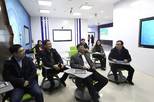 刘三女牙向杨善林院士介绍了工程中心及国家工程实验室的基本建设情况,以及在成果转化、学科发展、人才培养等方面取得的阶段性成果。随后杨善林院士来到展示与体验中心参观,进一步了解工程中心和工程实验室自主研发的各项信息化教学系统和平台,并与在场人员就相关产品在高校教学中的实际应用进行了交流探讨。