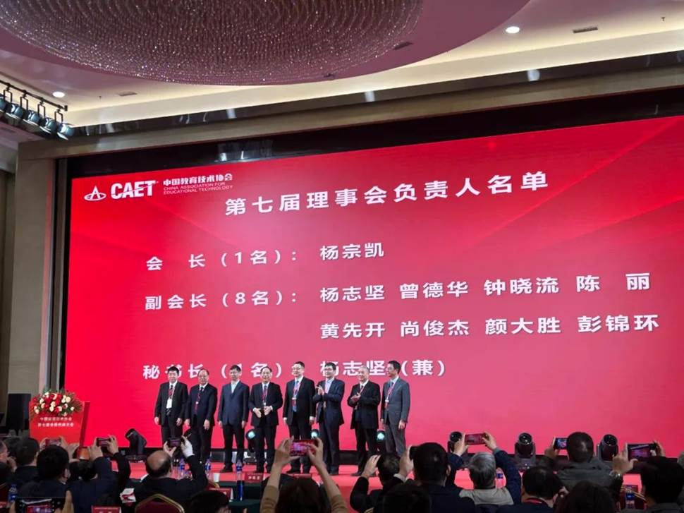 2023年12月10日,中国教育技术协会第七届会员代表大会在京举行。大会听取了第六届理事会工作报告、审议通过了第六届理事会财务报告和《协会章程(修订案)》,选举产生了新一届理事会,新当选会长杨宗凯发表讲话。