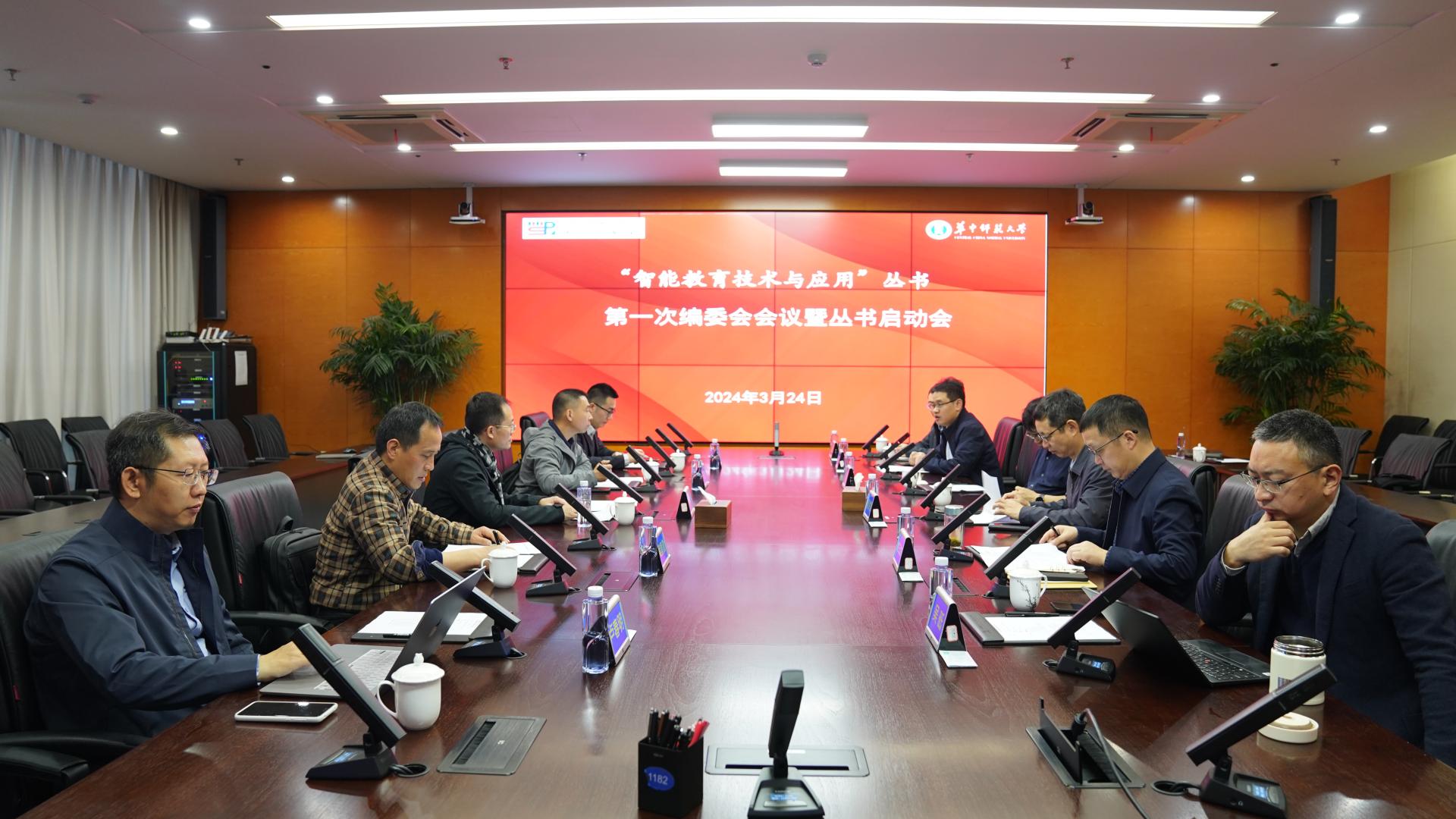 2024年3月24日上午,“智能教育技术与应用”丛书启动会暨编委会第一次会议在华中师范大学召开。丛书主编、教育大数据应用技术国家工程研究中心主任杨宗凯,副主编、华中师范大学人工智能教育学部部长刘三女牙,科学出版社信息技术分社社长余丁,编委会委员西安交通大学刘均教授、浙江师范大学黄昌勤教授、北京师范大学卢春明教授、中国科学技术大学刘淇教授、华中师范大学吴砥教授,编委会秘书华中师范大学孙建文教授、科学出版社王哲编辑等十余位专家、学者出席会议。会议由刘三女牙主持。