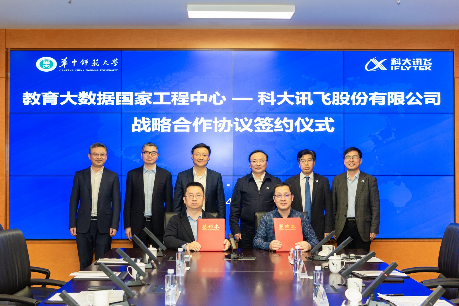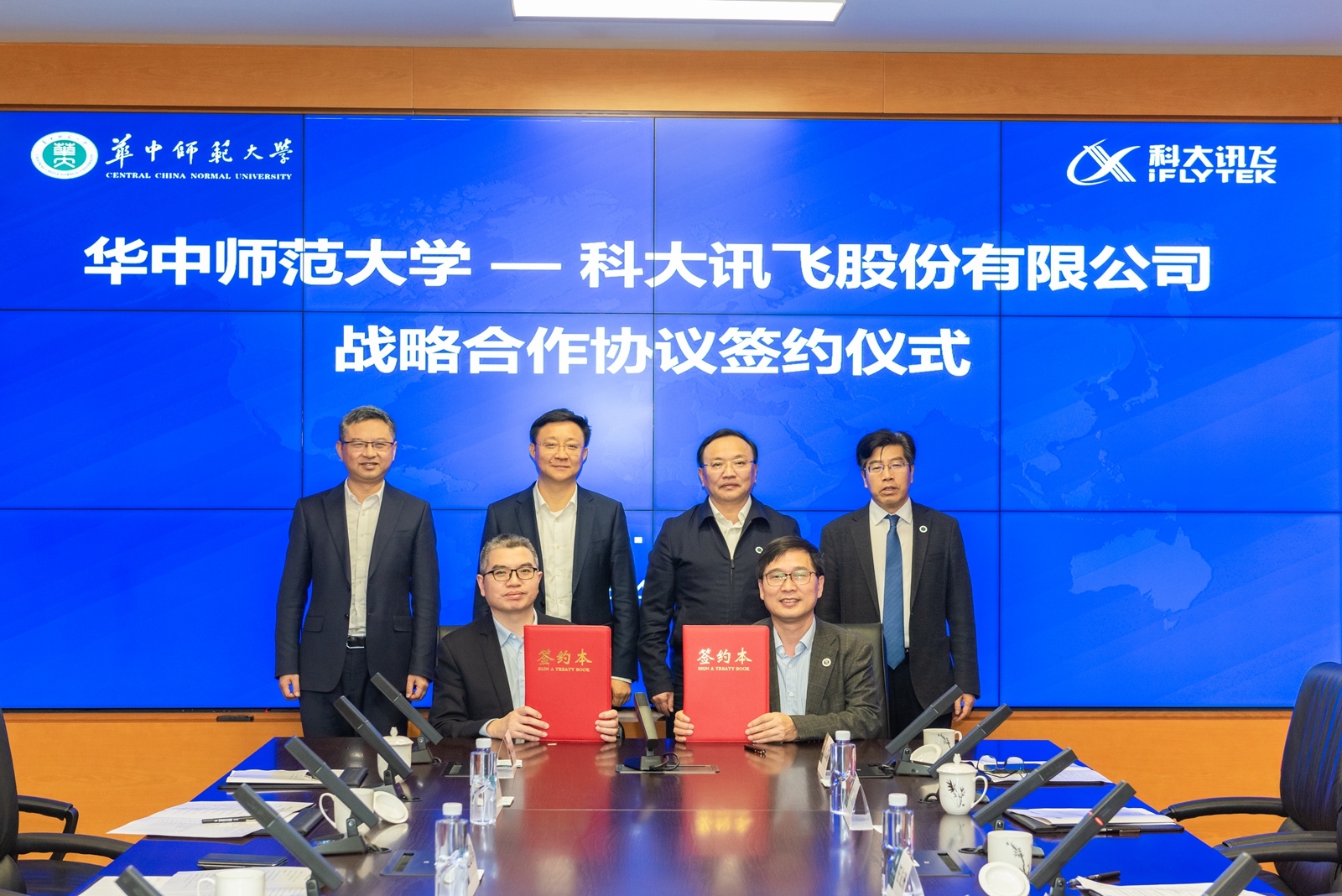 签约仪式上,聂小林与任友洲代表双方单位签署《华中师范大学与科大讯飞股份有限公司战略合作协议》;科大讯飞AI研究院院长王士进与我校人工智能教育学部教授刘三女牙签署《教育大数据应用技术国家工程研究中心与科大讯飞股份有限公司战略合作协议》。夏立新、彭双阶、任友洲、刘庆峰、聂小林、赵志伟等双方领导共同见证签约。