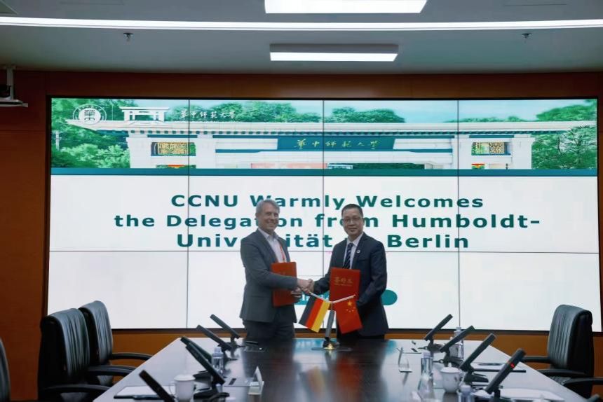 5月14日,副校长刘三女牙与柏林洪堡大学副校长尼尔斯·平克沃特教授共同签署合作协议。双方重点围绕以下领域达成合作协议:一是推动本科生及研究生层次的联合培养项目,包括短期访学与学位项目;二是促进跨学科科研团队共建,深化教师互访与联合研究;三是建立教育资源共享机制,推动学术资料与科研成果的交流互通。签约仪式上,刘三女牙副校长为平克沃特副校长颁发华中师范大学“客座教授”聘书。两校协议的签署将有效促进两校在高等教育创新、科研合作等领域的深度对接,为构建中德教育合作新平台提供重要支撑。