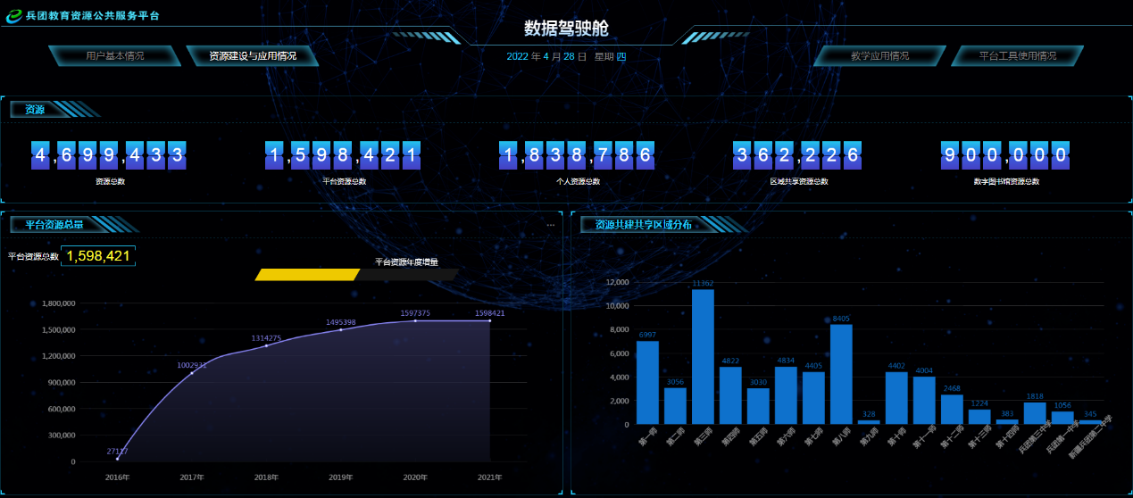 新疆生产建设兵团(以下简称“兵团”)以兵团教育资源公共服务平台为基础,不断汇聚优质数据资源、改善网络接入环境、建设教育行政专网、探索教育创新应用,以数据驱动提升兵团教育资源公共服务能力,推动数字资源供给侧结构性改革,扩展教育资源的辐射范围,提升教育资源的服务质量。