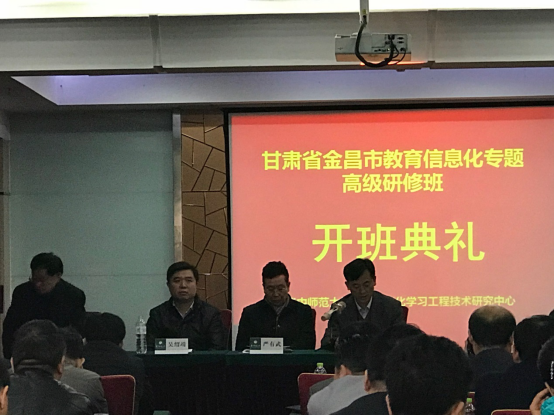 2017年11月20日至11月25日,甘肃省金昌市教育信息化专题高级研修班在华中师范大学成功举办。11月20日上午,本次研修班开班仪式在华中师范大学东门卓悦酒店22楼会议室举行,华中师范大学国家数字化学习工程技术研究中心副主任吴绍靖、金昌市教育局副局长、理工中专校长严有武、金昌市教育局总督学亢生宏等出席了开班仪式。