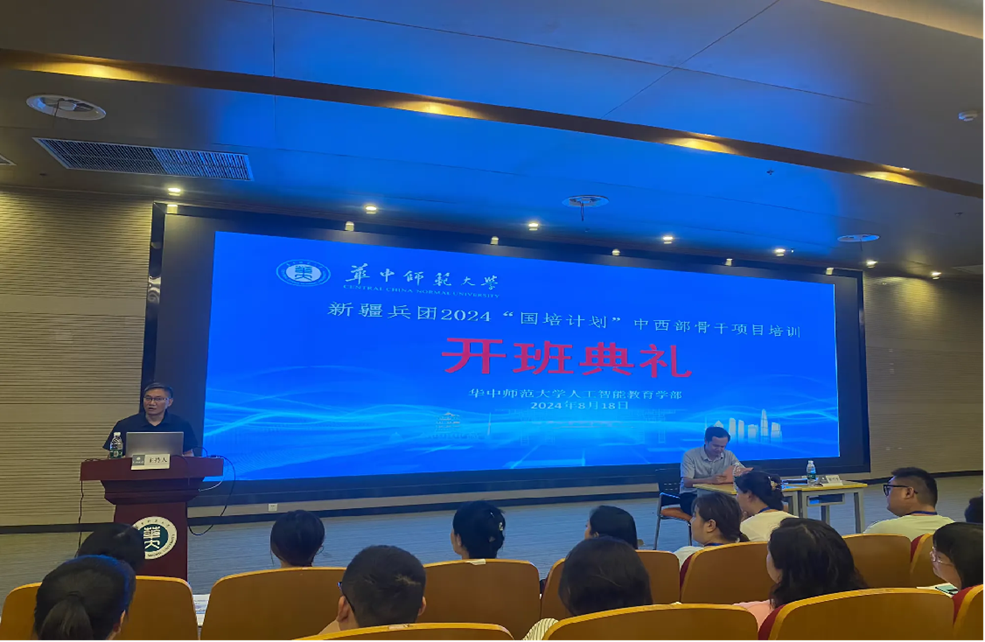 2024年8月18日上午,新疆兵团2024“国培计划”中西部骨干项目培训开班典礼在华中师范大学顺利举行。华中师范大学人工智能教育学部党委书记黄涛及原兵团教育局黎兴平局长以及来自新疆生产建设兵团的300名学科骨干教师共同参与了本次盛大的开班典礼。