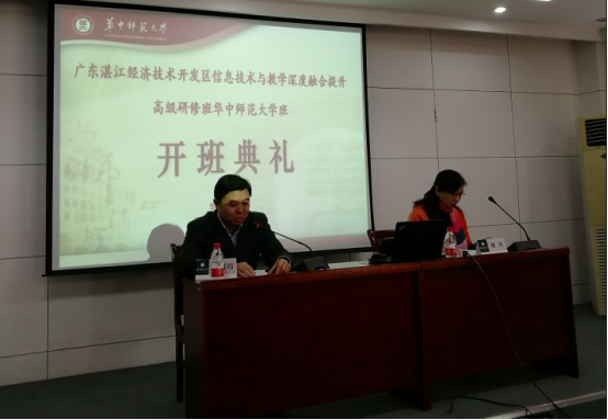 2019年3月24日至3月29日,湛江开发区信息技术与教学深度融合提升高级研修班在华中师范大学成功举办。3月24日上午,本次研修班开班仪式在华中师范大学科学会堂201举行,湛江经济技术开发区教育局培训副主任廖琪,华中师范大学国家数字化学习工程技术研究中心副主任吴绍靖出席了开班仪式。