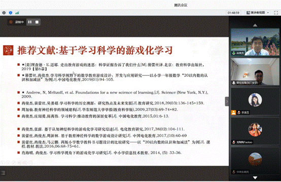 (通讯员 乐洁玉 审读人 王俊)9月20日,北京大学教育学院教育技术系长聘副教授、研究员,学习科学实验室执行主任,基础教育研究中心副主任,教育部高等学校教育技术专业教学指导分委员会委员,中国教育技术协会教育游戏专业委员会理事长尚俊杰教授应邀在线主讲第七期智能教育大讲坛——“基于学习科学视角的游戏化学习研究”。