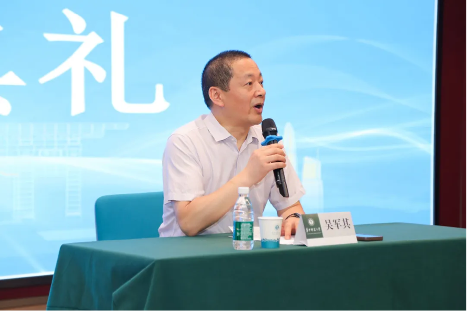 仪式上,华中师范大学吴军其院长发表了热情洋溢的讲话,对远道而来的学员表示热烈欢迎,并介绍了学校在智能教育应用方面的特色与成就,强调了数字技术在现代教育中的重要作用。他表示,本次培训旨在提升新疆兵团学校管理团队的信息化领导力,希望通过系统的学习和实践,能够推动兵团教育的数字化转型与发展。