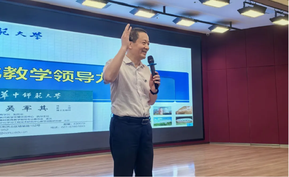 随着开班仪式的圆满结束,学员开启学习之旅。开班第一讲是华中师范大学教师教育学院副院长、国家数字化学习工程技术研究中心教学创新研究部主任吴军其教授进行了题为“数字时代教师专业发展”的专题讲座。吴军其教授从多个角度深入探讨了数字化时代教师专业发展的路径与方法。他首先强调了数字时代优秀教师的标准,指出教师不仅要掌握信息技术、教学艺术和教学学术,还要在课前进行信息整合、课中实现人机助学、课后进行知识拓展。吴教授指出,数字化时代的教育者需要更加关注学生的个性化需求,利用数字化手段提升教学效率和质量。