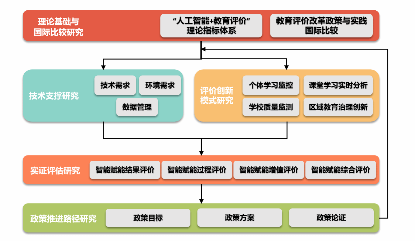 项目针对教育评价领域存在的问题与新时代的教育评价要求,通过对智能技术支持下的教育评价改革进行研究,力图实现智能技术赋能教育评价的理论创新,构建以智能技术为支撑、符合现实和未来需求的新时代教育评价模式,研发应用于教育评价的关键智能技术、平台系统以及标准规范。基于理论模式创新以及技术研发,开展智能技术赋能教育结果评价、过程评价、增值评价、综合评价的实践示范,将研究与实践结果进行归纳总结,为国家和地方有关教育评价的政策的制定与实施提供依据。